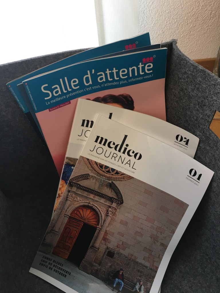 Au fil du temps, et pour vous aider à faire passer l’amère pilule de ce temps gâché, tous les cabinets se sont évertués à imaginer la meilleure constellation en terme d’aménagement et d’équipement. L’offre pouvant aller du bouquet de fleurs fraîches à la machine à café en passant par divers objets d’art ou de décoration plus ou moins personnels. En matière de littérature aussi, les choses peuvent allègrement varier. Certes, Gala et Voici ont généralement été détrônés par l’Illustré et le magazine du journal Le Temps [ndlr. Référence à la chronique intitulée #salon_de_coiffure]. Et selon les centres d’intérêt de son médecin, on peut même avoir droit à un exemplaire de Géo ou du National Geographic. La classe. Malheureusement, le coronavirus étant passé par là et ayant vidé les salles d’attente de toute forme de support papier, nous voilà désormais condamnés à lire, relire et finalement retenir, ce que seuls les murs ont pu conserver, à savoir les diplômes de nos praticiens. Maigre récompense.