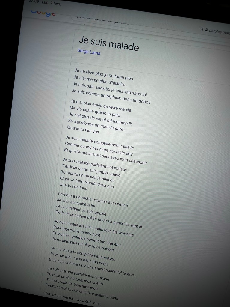 Je suis malade, c’est ça je suis malade